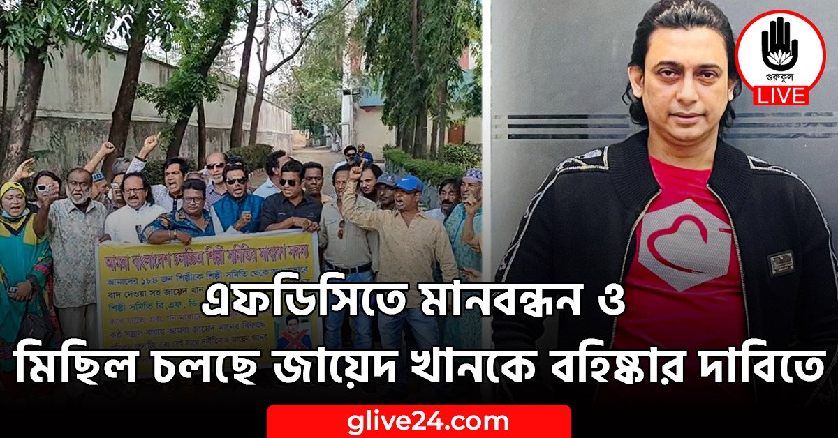 এফডিসিতে মানবন্ধন ও মিছিল চলছে জায়েদ খানকে বহিষ্কার দাবিতে